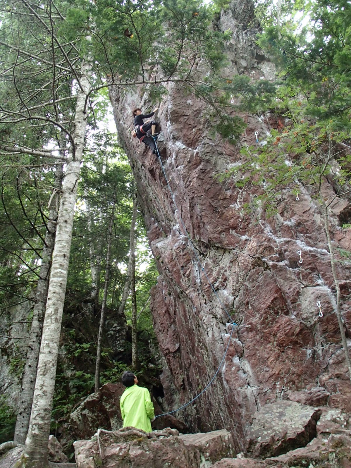 ツアー期間の前半は名寄にある見晴岩で、後半は占冠(しむかっぷ)にある赤岩青巌峡で登った。