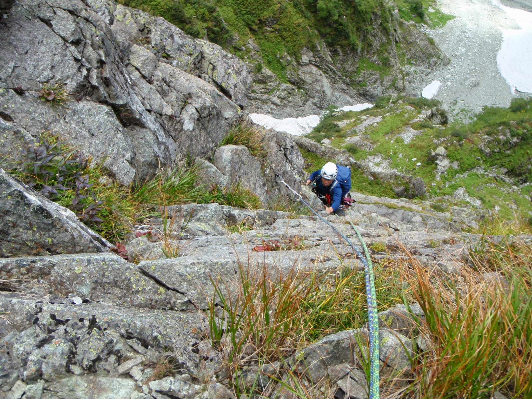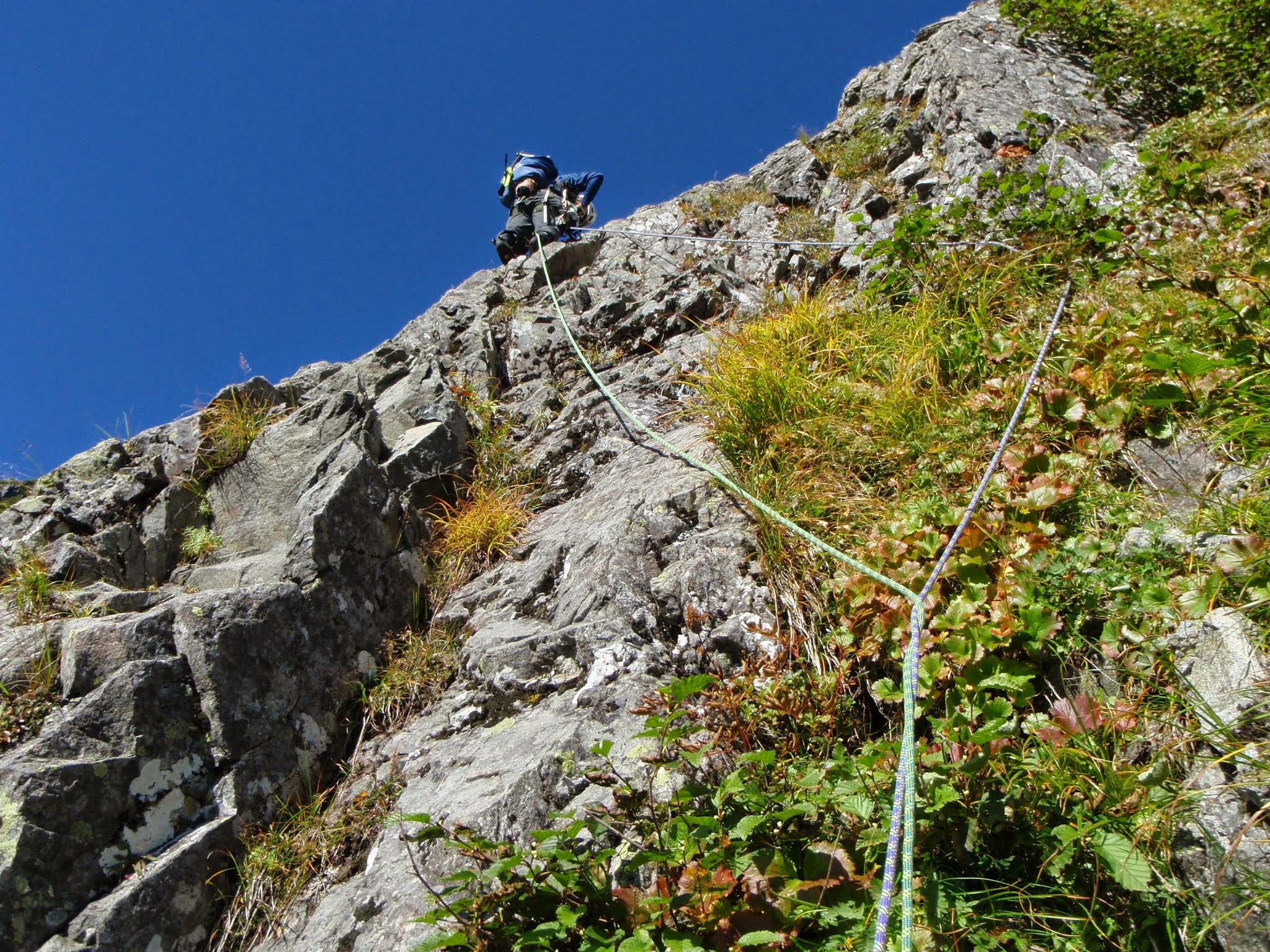 先行の長野さんのビレイ点までノープロ。探せばあるのだろうが簡単なところを選んでいく。