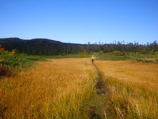 大場谷谷地の湿原はすでに草紅葉。