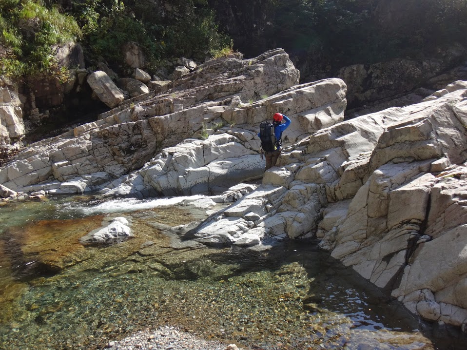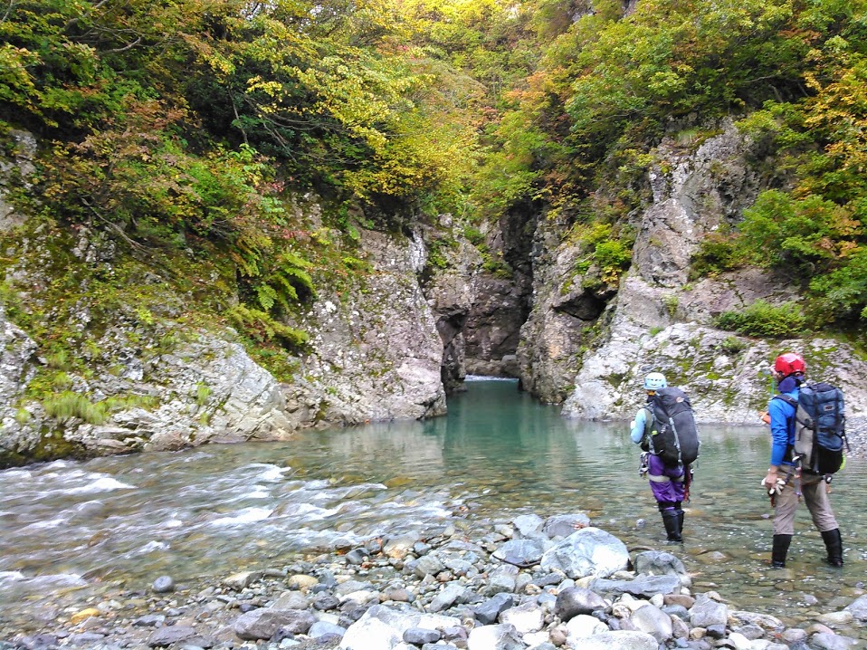 やっと遡行できる渓相になる、紅葉とあいまって美しい渓谷美を堪能出来るようになり、メンバーの表情がやわらいでほっとする。