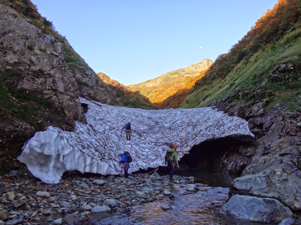 ・シッカイクラ沢出合~1200m付近まですぐに雪渓が出てくる、Yちゃんが乗ってしばらくしてからS見さんが乗ろうとしてバイルを叩きこんだらYちゃんのすぐ後ろから雪渓が崩壊した。
