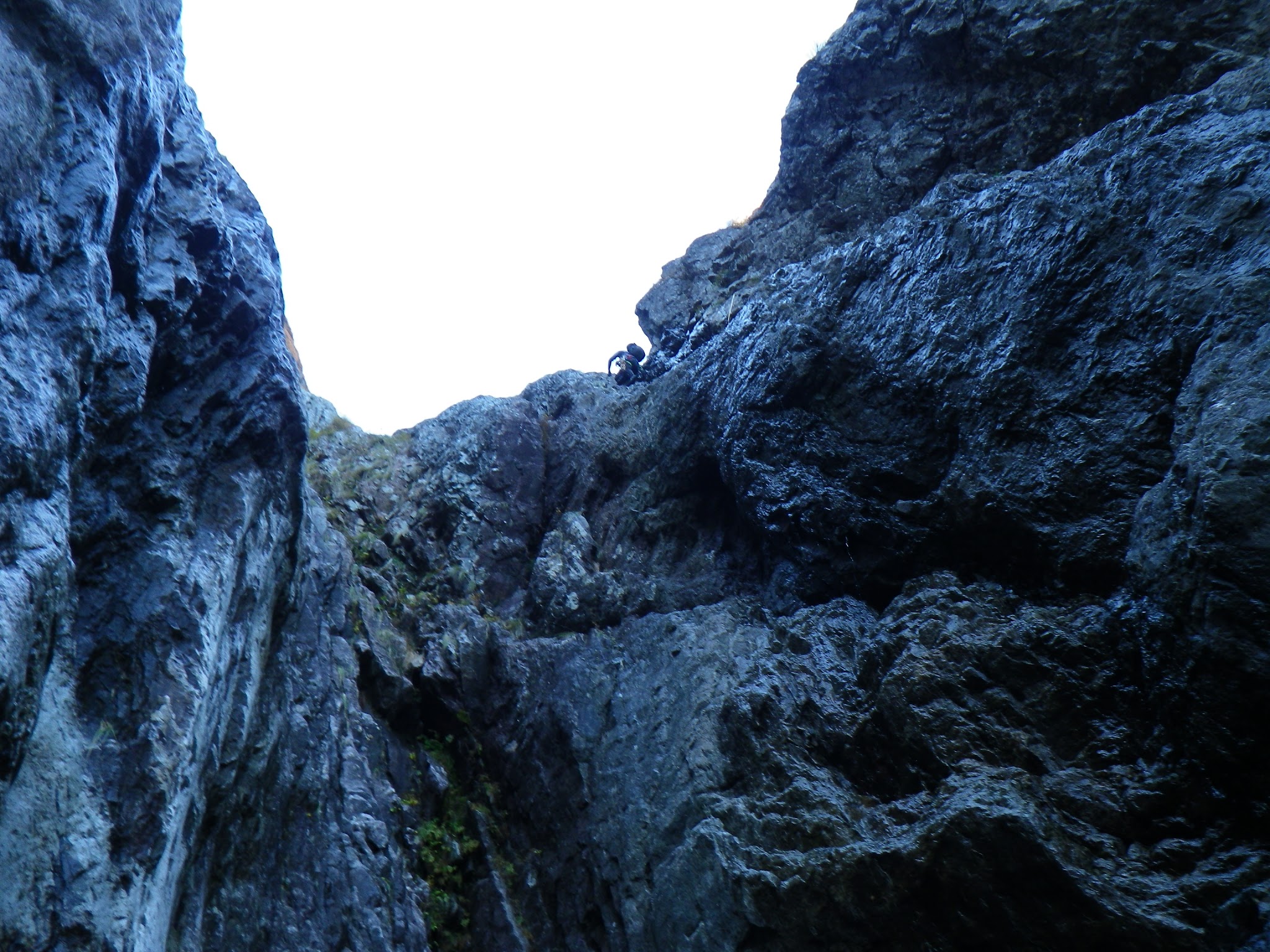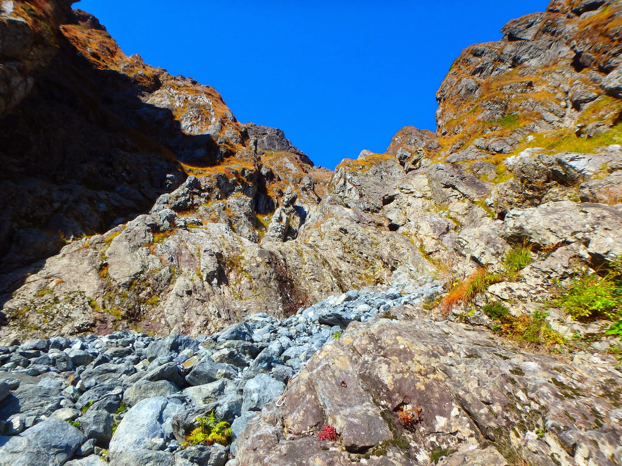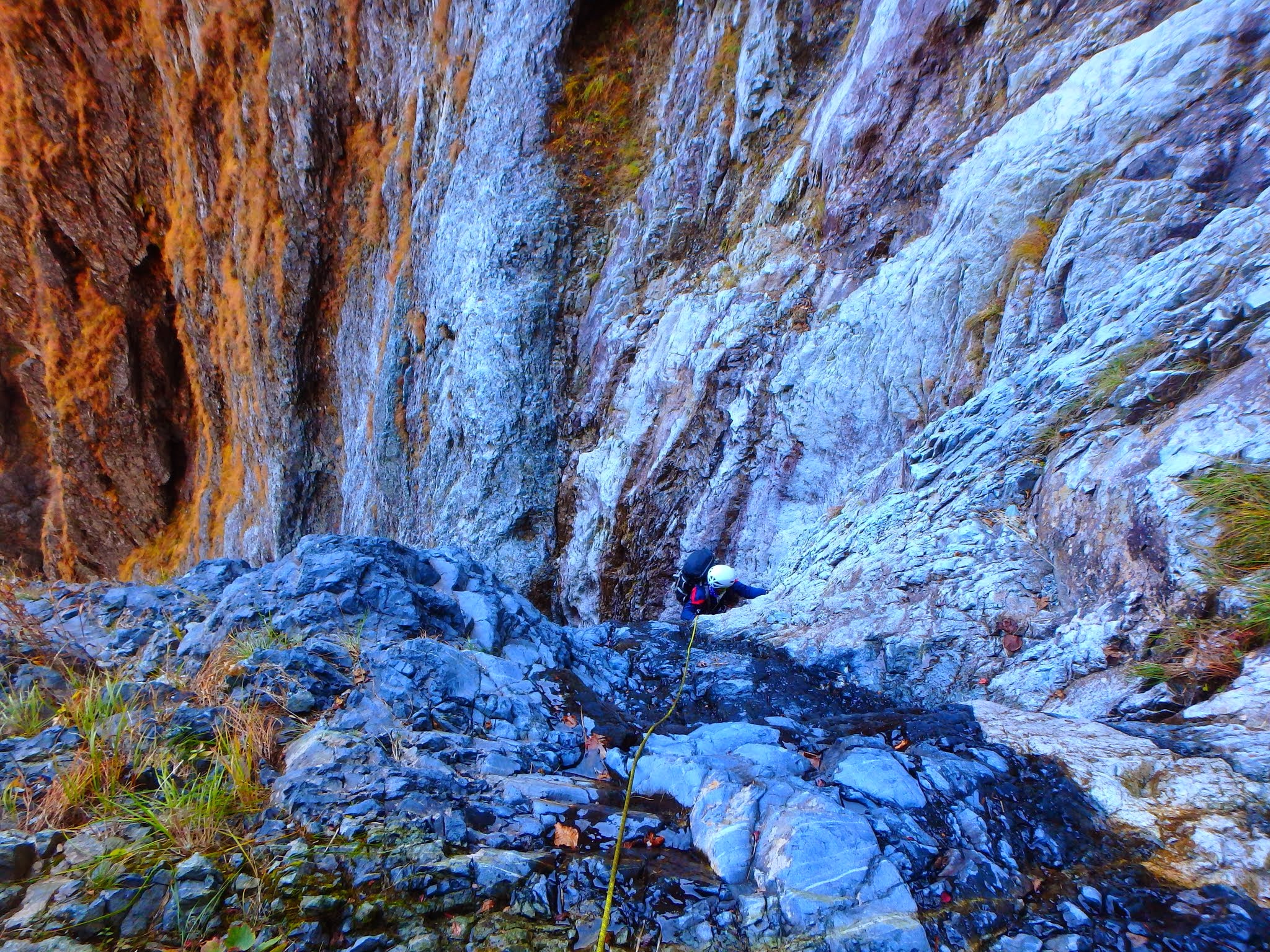 この上も狭いルンぜが続き、右岸スラブでの巻きを交えながら快調に登っていく。足回りもラバーソールの沢靴で充分な感じ。但し、記録によるとたまに落石もあるらしいので頭上には要注意。